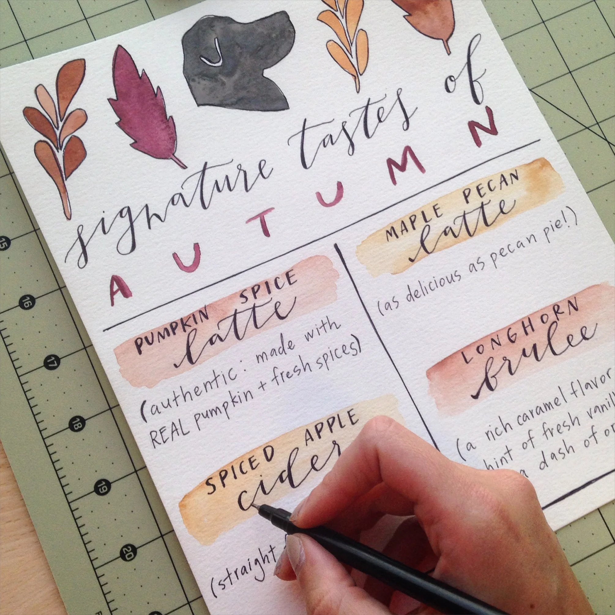 My personal go-to's are watercolor + black ink. I love the pop of color and the way the watercolor and ink compliment each other!