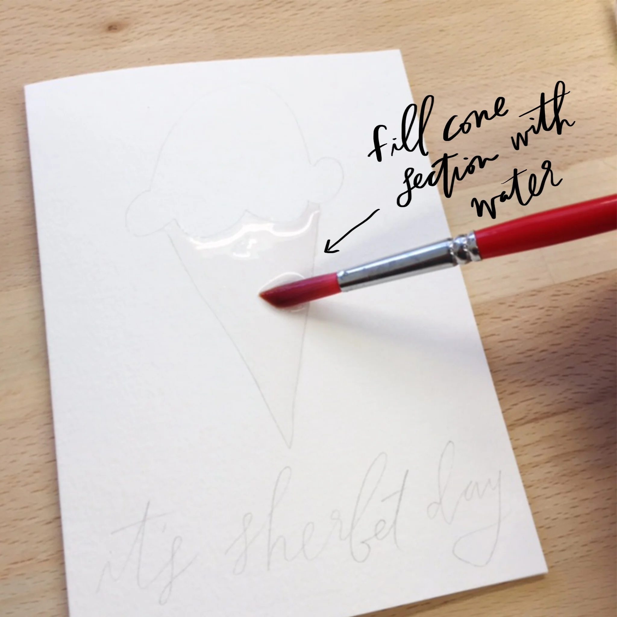 First up, outline your sherbet design in pencil. You're basically making a simple ice cream cone, except we are calling it sherbet. Same thing right? Ideally you'd lightly trace, but it isn't crucial since we'll be tracing over with sharpie later on.