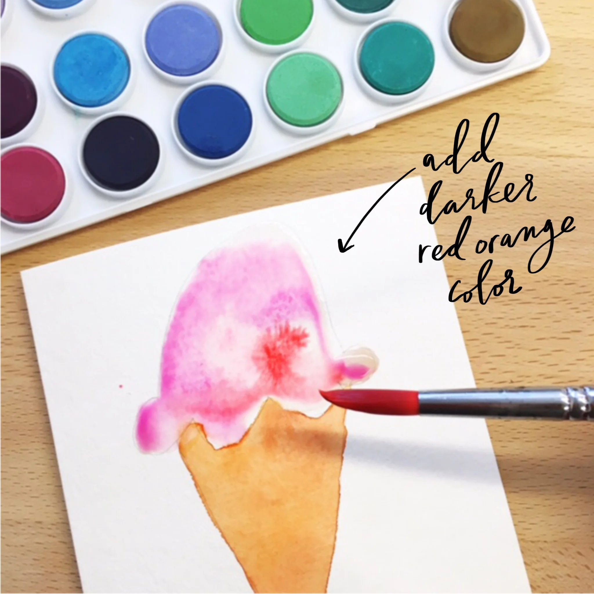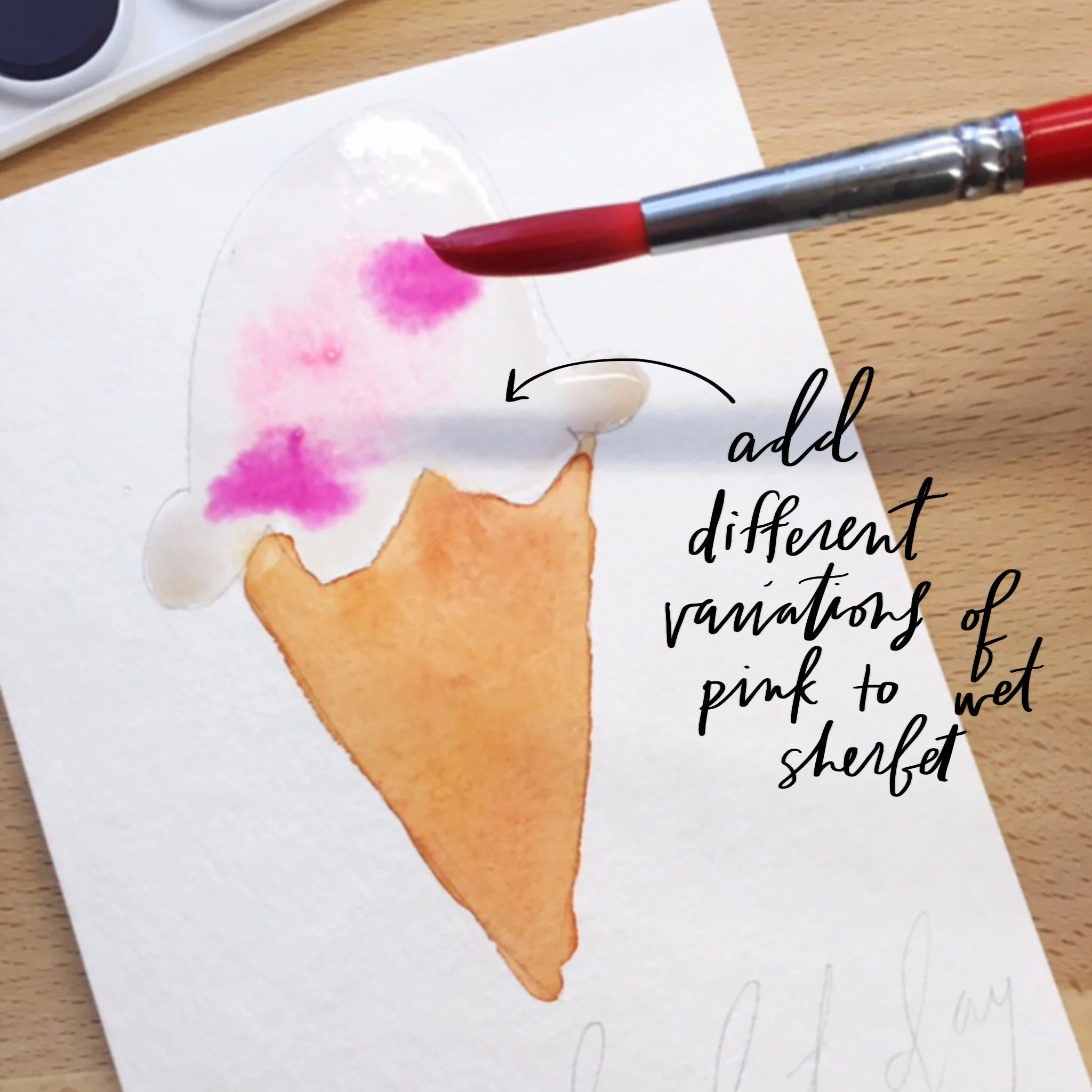 So once your cone area is dry, we are going to repeat step two on the sherbet area. I used different variations of pink for this guy!