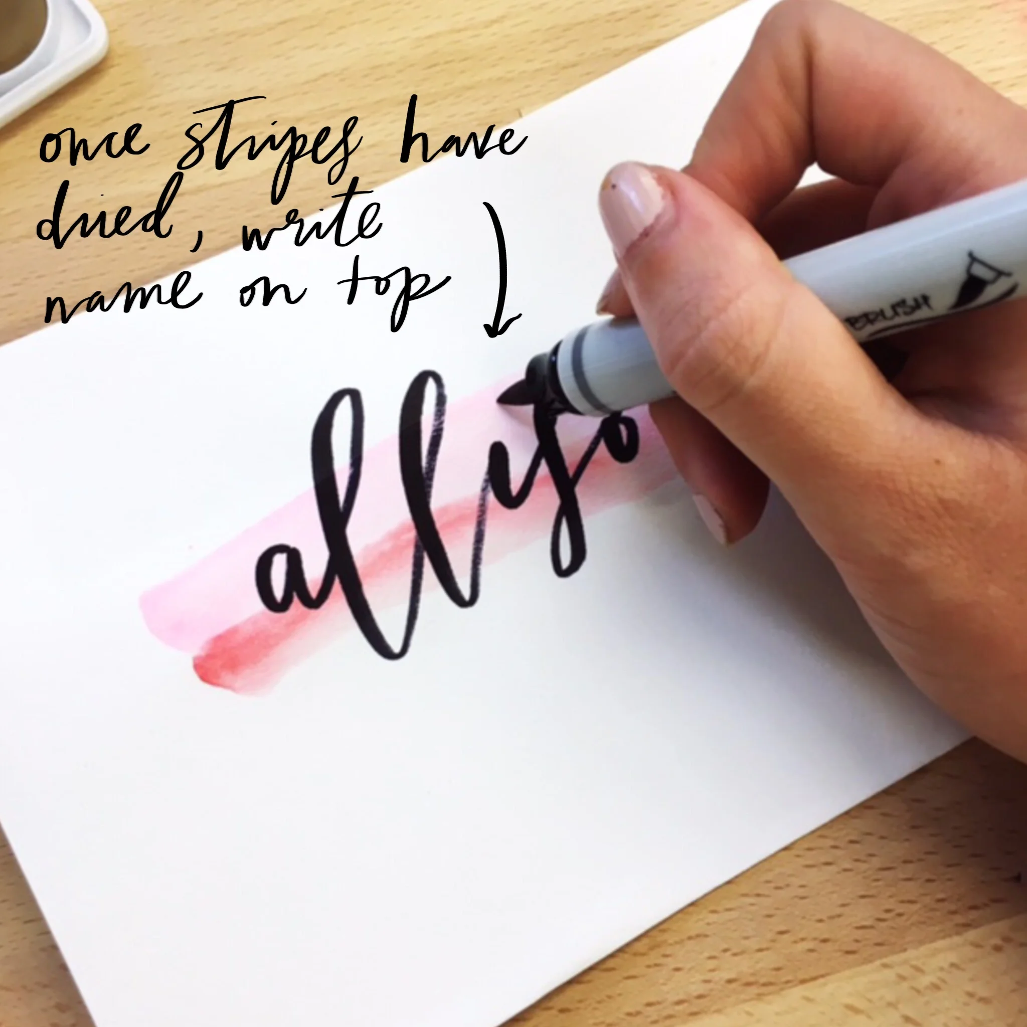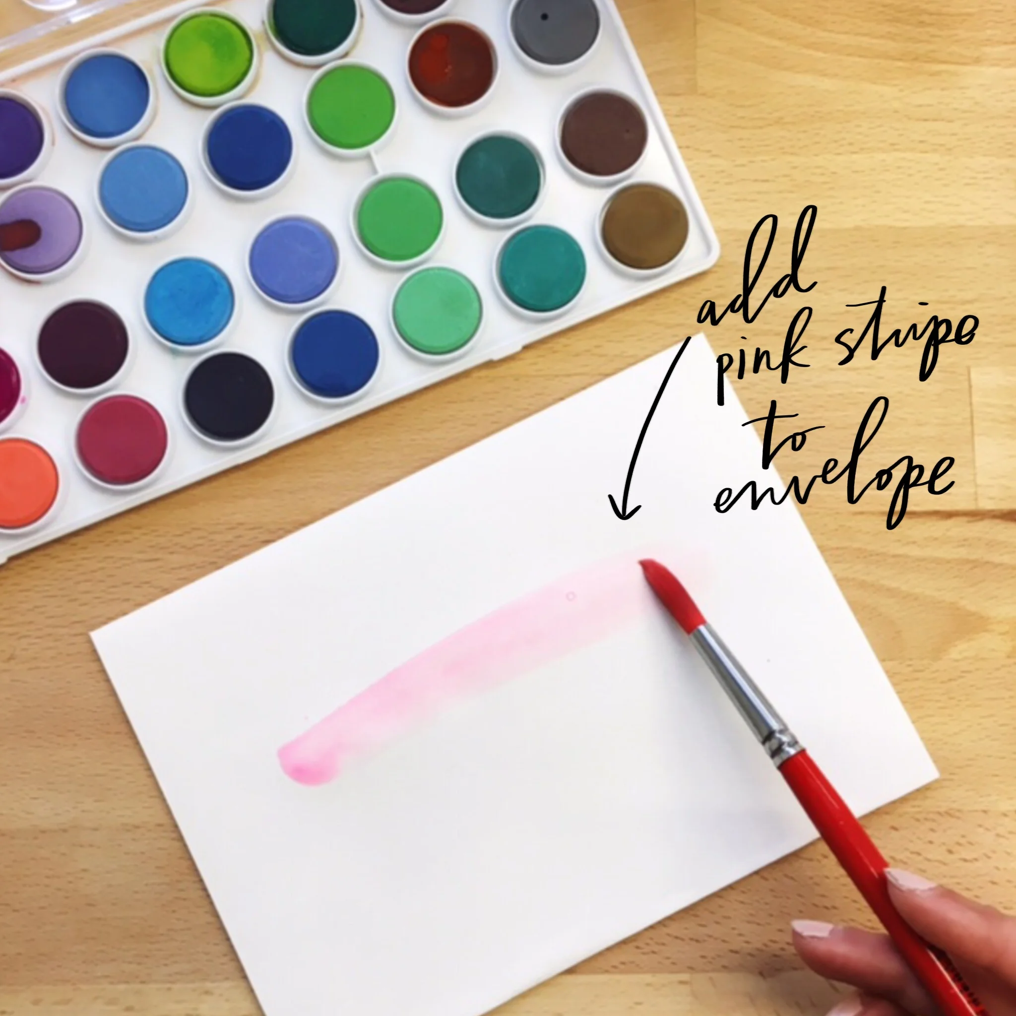 Once your watercolor strips on your envelope are dry, it's time to letter on top! Pro tip: Use the same font you used on the card to create a cohesive pairing.