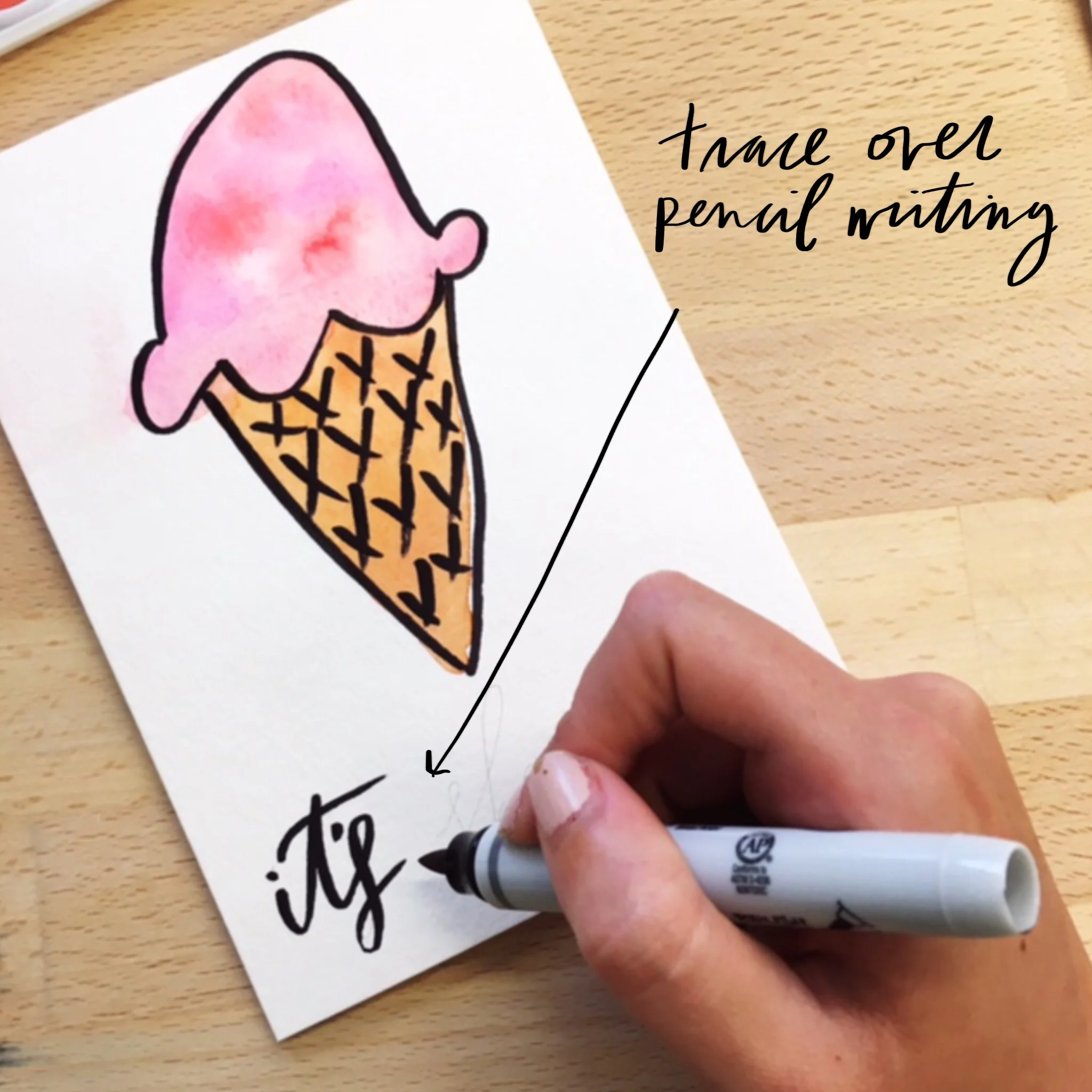 We're getting close! Trace over your pencil lettering. If you didn't trace over exactly, no worries! Take an eraser once it is dry and erase any stray marks.