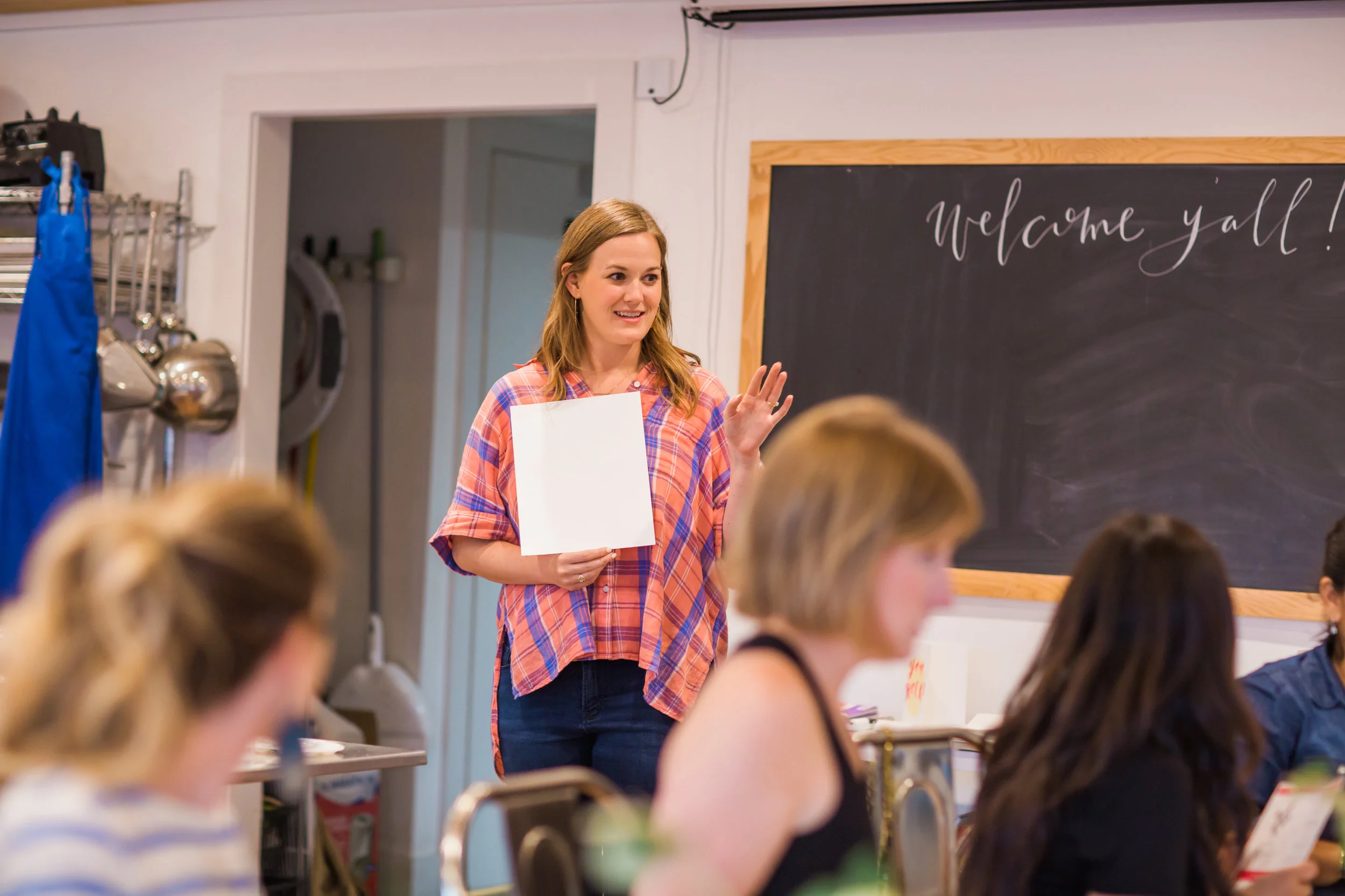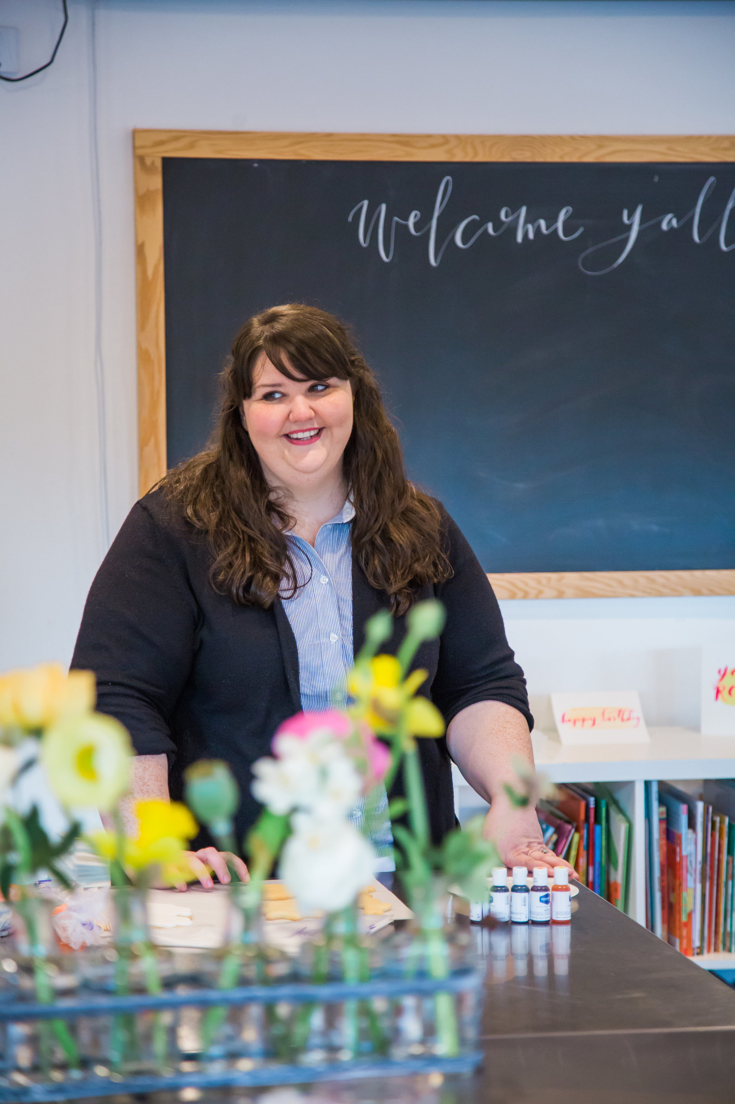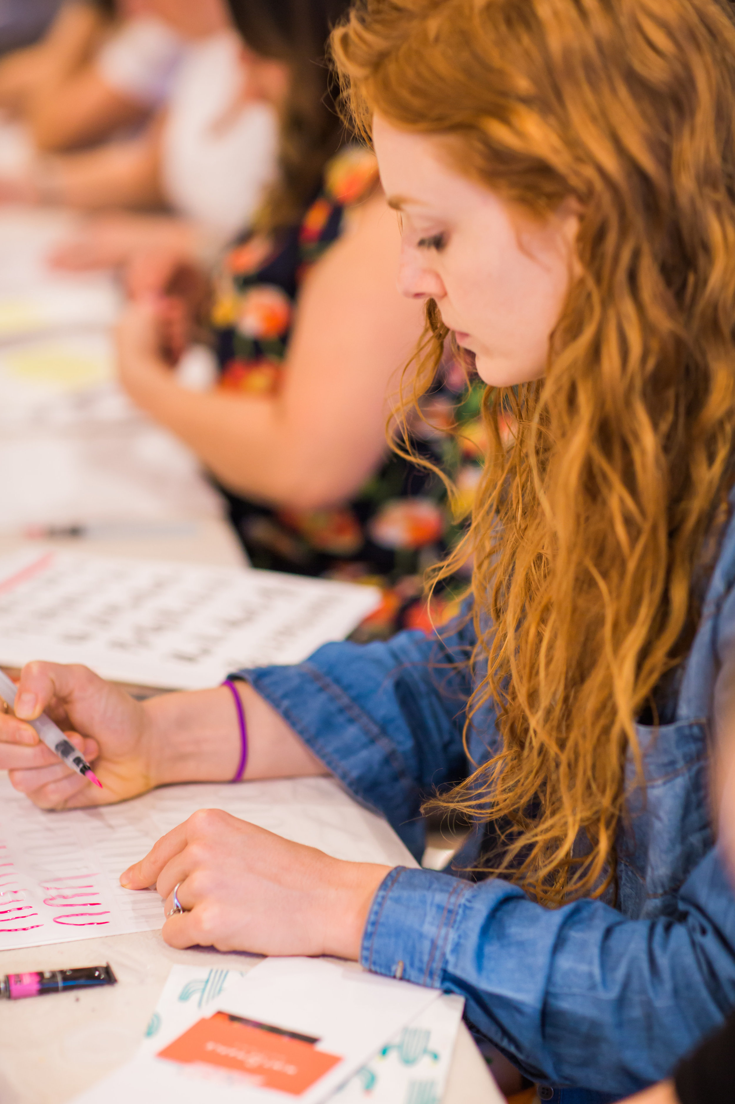Natalie Coulter introducing brush lettering to guests. Photo credit: Melissa Lewis Photography
