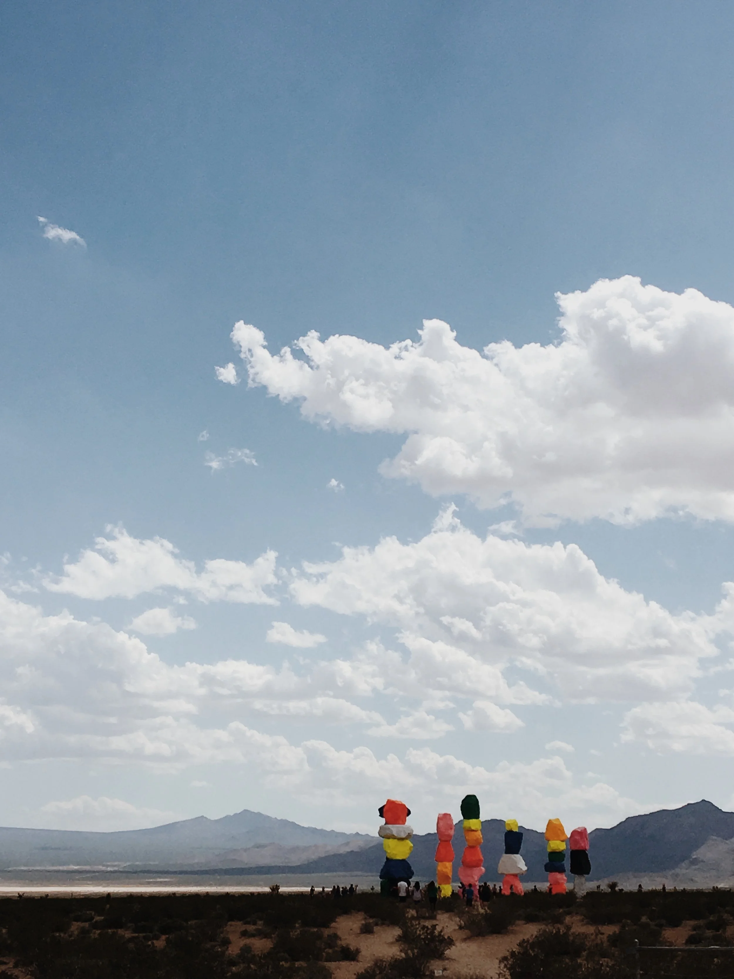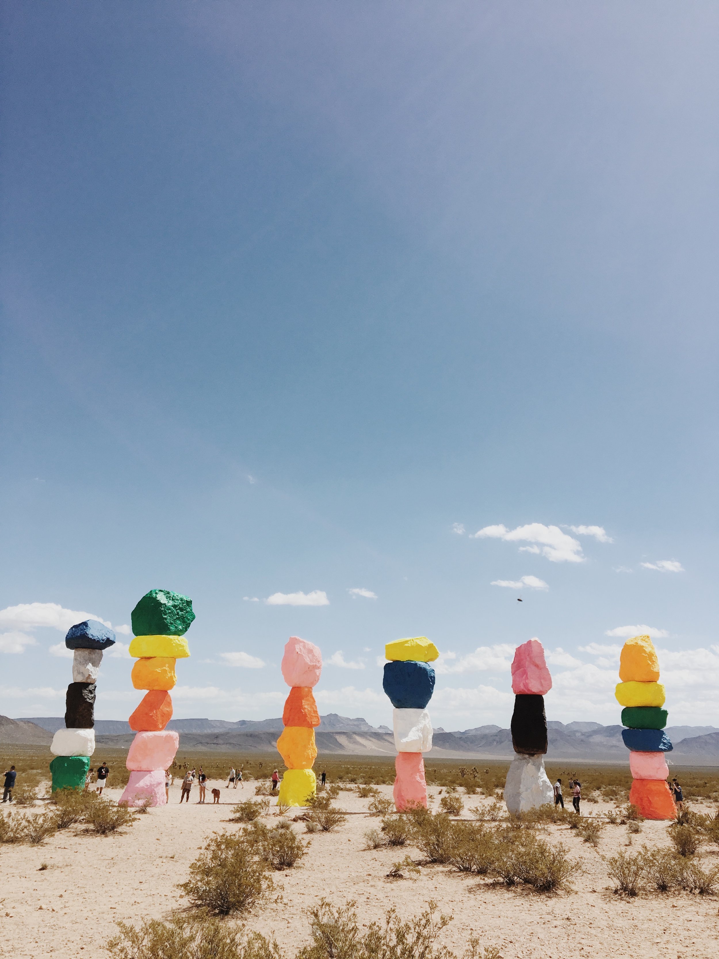 It may look like a bit crazy, but these painted boulders are called the Seven Magic Mountains. Each unique limestone sculpture weighs approximately 20-25 tons!!